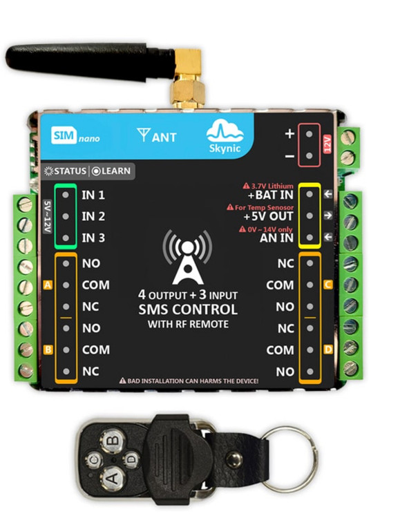 کنترل پیامکی 4 کانال دارای سه ورودی دیجیتال، یک ورودی آنالوگ، باتری پشتیبان و ریموت کنترل است که با استفاده از آن میتوان هر گونه وسیله الکتریکی را از طریق پیامک کنترل کرد. همچنین این کنترلر پیامکی دارای یک اپلیکیشن موبایل است که برای راحتی و سهولت کار میتوان از آن استفاده کرد.