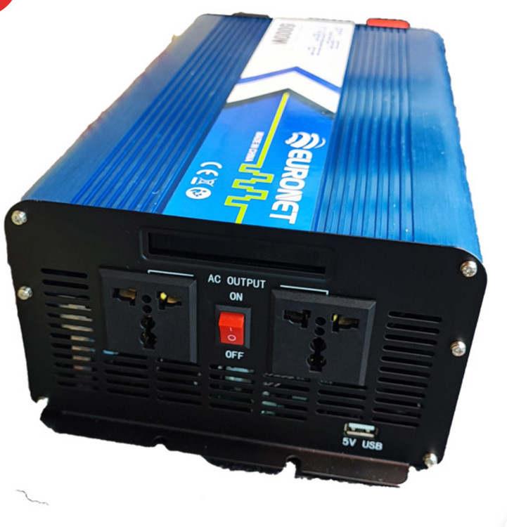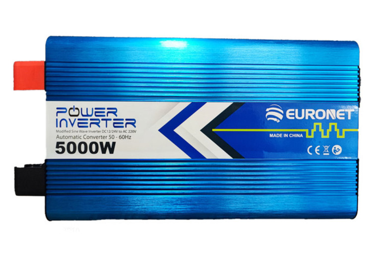 از این جهت وجود وسیله ایی مثل اینورتر این امکان را به ما میدهد تا براحتی برق خوردو را به برق شهری تبدیل کنیم. یعنی تبدیل برق 12 و 24 ولت به 220 ولت شهری است. مبدل برق خودرو 5000 وات 12/24 ولت به 220 ولت برند یورونت از اینورترهای بسیار خوشنام برای تبدیل برق 12 ولت خودرو به برق 220 ولت شهر میباشد. این یک اینورتر با طراحی منحصر به فرد می باشد و قادر است ولتاژ باتری را به صورت اتوماتیک شناسایی کرده و برای هر دو حالت 12 یا 24 ولت مورد استفاده قرار گیرد. نمایشگر گرافیکی پیشرفته ای دارد که پارامترهای اصلی مورد نیاز برای کنترل ورودی و خروجی شامل ولتاژ باتری، ولتاژ خروجی و توان مصرفی را نمتیش میدهد.