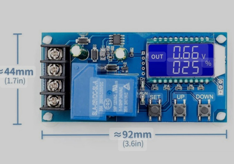 این دستگاه ولتاژ را به صورت همیشگی برررسی و محاسبه کرده و اگر باتری شارژ شود جریان را قطعه خواهد کرد. در واقع این قابلیت هم وجود دارد که در گزینه set گزینه UP و Down وجود دارد که این امکان را به کاربر میدهد که ولتاژ بیشینه MAX و کمینه MIN را تنظیم کند. برای نمونه اگر ولتاژ DOWN روی 11.6V تنظیم شده و ولتاژ UPر وی 13.70 کنیم، اتصال رله تا زمانی که ولتاژ به 11.6 نرسد انجام نمیشود. البته اگر نصب و راه اندازی درست انجام شود برای شارژ باتری خودرو نیز مناسب است که طبیعتا ولتاژ ورودی باید 13 تا 14 ولت باشد. 0 به صورت کلی باید 1 تا 2 ولت بیشتر از ولتاژ باتری باشد )