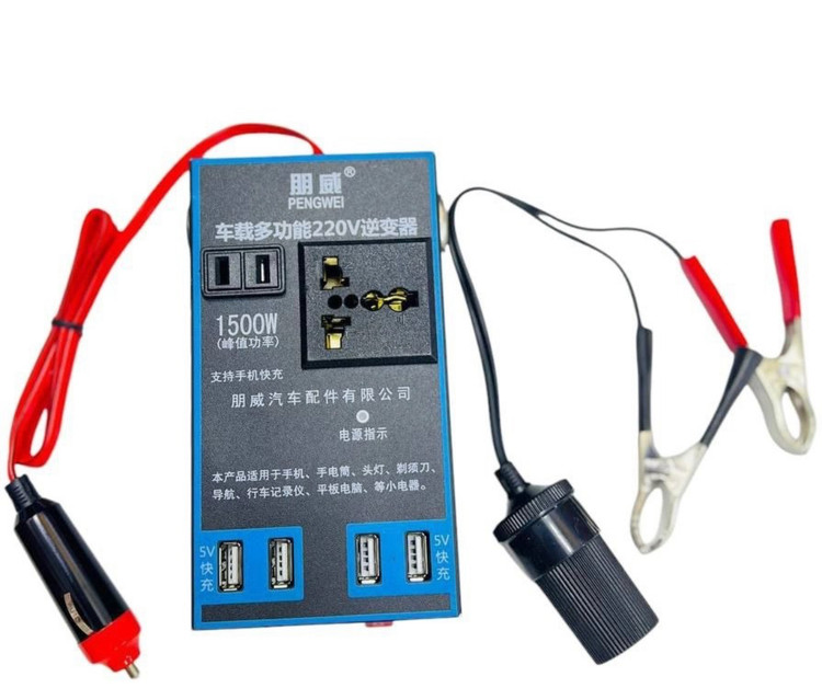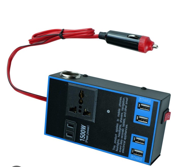 مبدل برق ۱۲ به ۲۲۰ ۱۵۰۰ وات همراه رابط سر باطری و فندکی پریز خروجی کابل و ۴ usb