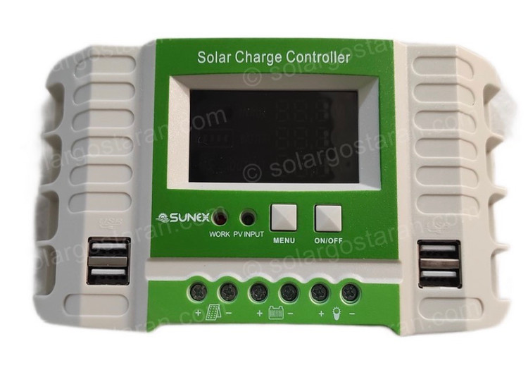 شارژ کنترلر خورشیدی 10 آمپر 12/24 ولت اتوماتیک برند Sunex مدل NT-10 از تکنولوژی مدولاسیون PWM بهره میبرد و مناسب استفاده در سیستم های برق خورشیدی برای ذخیره سازی انرژی تولیدی پنلها در باتری ها میباشد. مجهز به نمایشگر LED جهت نمایش تمامی پارامترهای اساسی یک سیستم برق خورشیدی شامل جریان و ولتاژ پنل و باتری ، وضعیت شارژ، وضعیت بار خروجی و … میباشد. با تشخیص اتوماتیک شب و ورز از برگشت انرژی ذخیره شده باتری ها به پنل جلوگیری می کند. از تکنولوژی شارژ سه مرحله ای بهره برده و انواع باتریها شامل Gel، Seald و Flooded و لیتیومی را پشتیبانی میکند.